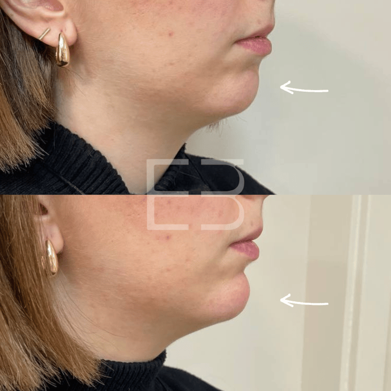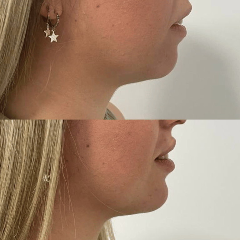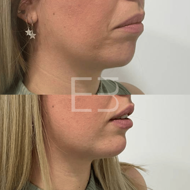 Este tratamiento es ideal para aquellos con una desproporción del tercio inferior del rostro o tienen el mentón hundido. Gracias a la aplicación de ácido hialurónico se consigue la armonía de los rasgos faciales de frente y de perfil, aumentando el volumen y proyección del mentón con unos resultados naturales. La duración de los resultados del aumento de mentón sin cirugía es de, aproximadamente, 18 meses